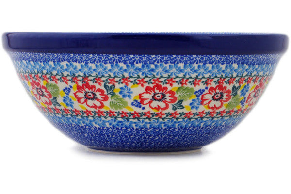 This Polish pottery Bowl is made by Ceramika Artystyczna workshop in Boleslawiec, Poland. Manufacturer item number H6726Q. It is 3¾" high and measures 9¼" by 9¼". The capacity of this Bowl is 65.9 oz when filled to rim and it weighs 2.6 lbs. The pattern was designed by artist Teresa Liana. It is part of the Hummingbird Meadow Collection.