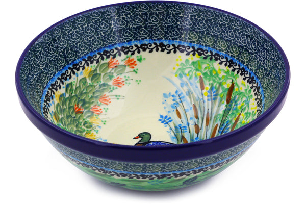 Polish Pottery 9" Bowl Mallard Meadow UNIKAT