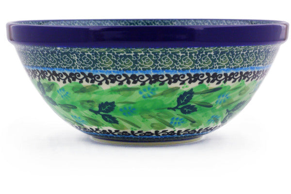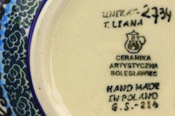 This Polish pottery Bowl is made by Ceramika Artystyczna workshop in Boleslawiec, Poland. Manufacturer item number H8463I. It is 3¾" high and measures 9¼" by 9¼". The capacity of this Bowl is 65.9 oz when filled to rim and it weighs 2.6 lbs. The pattern was designed by artist Teresa Liana. It is part of the Mallard Meadow Collection.