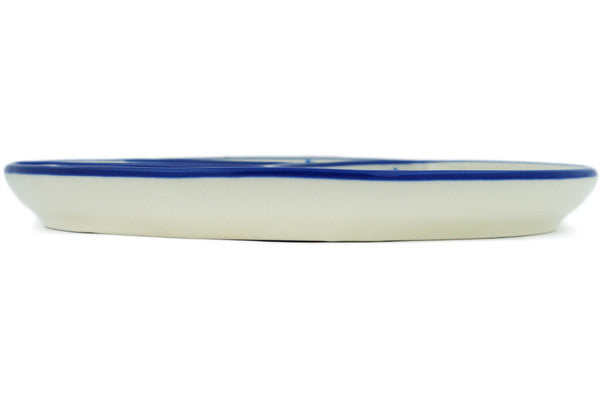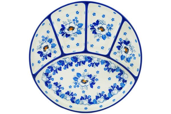 This Polish pottery Divided Dish is made by Ceramika Artystyczna workshop in Boleslawiec, Poland. Manufacturer item number H8221M. It is ¾" high and measures 8¾" by 8¾". The weight of this Divided Dish is 1.5 lbs. It is part of the Blue Spring Collection.