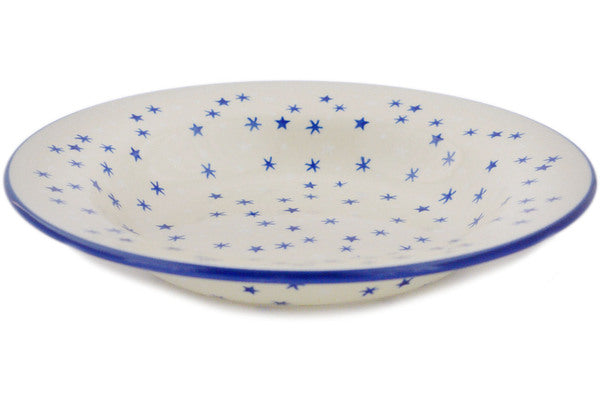 This Polish pottery Pasta Bowl is made by Ceramika Artystyczna workshop in Boleslawiec, Poland. Manufacturer item number H7576Q. It is 1¾" high and measures 9½" by 9½". The capacity of this Pasta Bowl is 11.8 oz when filled to rim and it weighs 1.5 lbs. It is part of the Twinkling Collection.