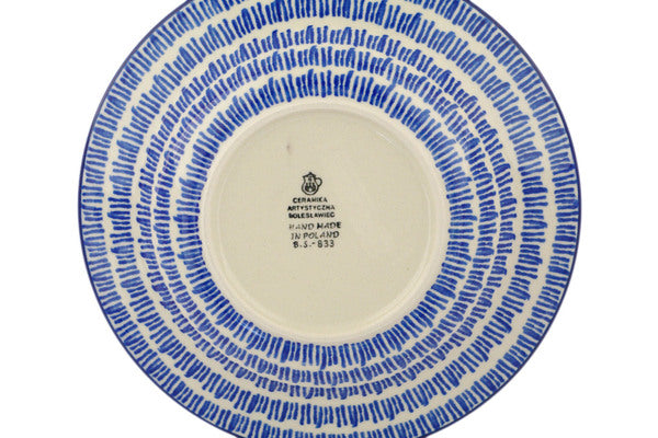 This Polish pottery Pasta Bowl is made by Ceramika Artystyczna workshop in Boleslawiec, Poland. Manufacturer item number H7728Q. It is 1¾" high and measures 9½" by 9½". The capacity of this Pasta Bowl is 11.8 oz when filled to rim and it weighs 1.5 lbs.