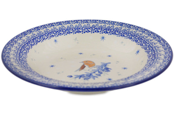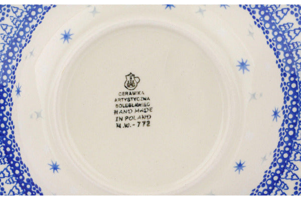 This Polish pottery Pasta Bowl is made by Ceramika Artystyczna workshop in Boleslawiec, Poland. Manufacturer item number H4039R. It is 1¾" high and measures 9½" by 9½". The capacity of this Pasta Bowl is 11.8 oz when filled to rim and it weighs 1.5 lbs.