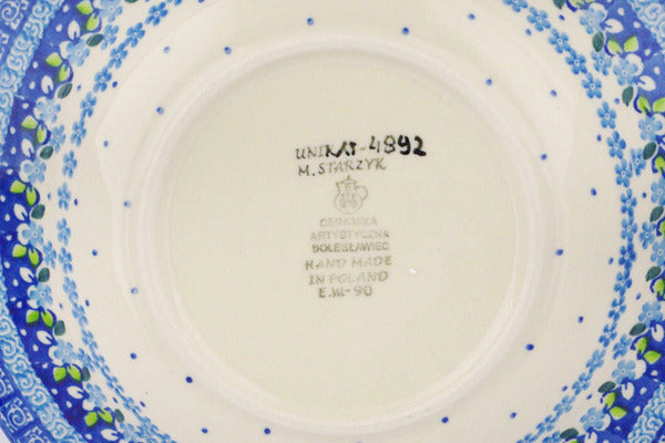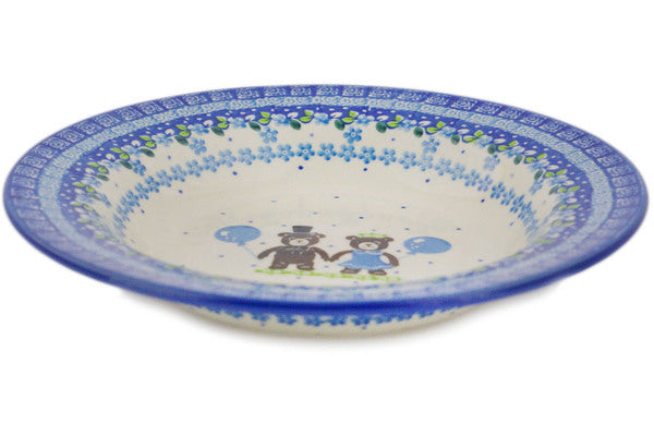 This Polish pottery Pasta Bowl is made by Ceramika Artystyczna workshop in Boleslawiec, Poland. Manufacturer item number H7316Q. It is 1¾" high and measures 9½" by 9½". The capacity of this Pasta Bowl is 11.8 oz when filled to rim and it weighs 1.5 lbs. The pattern was designed by artist MARIA STARZYK. It is part of the Bear Party Collection.
