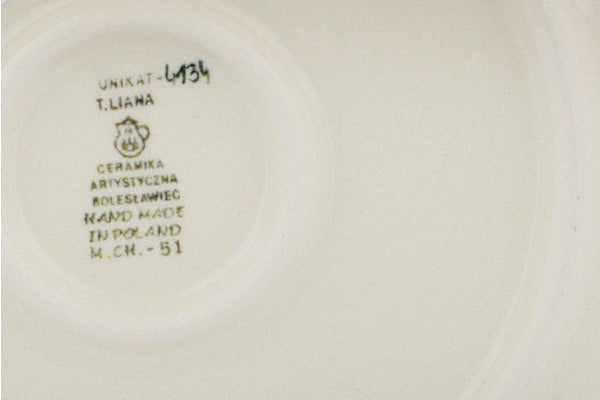 This Polish pottery Pasta Bowl is made by Ceramika Artystyczna workshop in Boleslawiec, Poland. Manufacturer item number H8084Q. It is 1¾" high and measures 9½" by 9½". The capacity of this Pasta Bowl is 11.8 oz when filled to rim and it weighs 1.5 lbs. The pattern was designed by artist Maria Starzyk. It is part of the Bright Petals Collection.