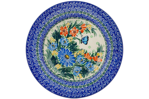 This Polish pottery Pasta Bowl is made by Ceramika Artystyczna workshop in Boleslawiec, Poland. Manufacturer item number H7976Q. It is 1¾" high and measures 9½" by 9½". The capacity of this Pasta Bowl is 11.8 oz when filled to rim and it weighs 1.5 lbs. The pattern was designed by artist Krystyna Deptuła. It is part of the Butterfly Love Collection.