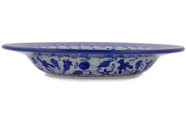 This Polish pottery Pasta Bowl is made by Ceramika Artystyczna workshop in Boleslawiec, Poland. Manufacturer item number H2857R. It is 1¾" high and measures 9½" by 9½". The capacity of this Pasta Bowl is 11.8 oz when filled to rim and it weighs 1.5 lbs. It is part of the Ocean Medley Collection.