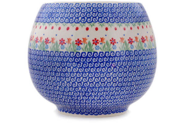 This Polish pottery Planter is made by Ceramika Artystyczna workshop in Boleslawiec, Poland. Manufacturer item number H0974R. It is 8" high and measures 9" by 8½". The capacity of this Planter is 194.6 oz when filled to rim and it weighs 5.0 lbs. It is part of the Babcia's Garden Collection.