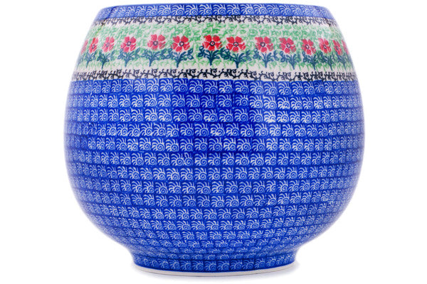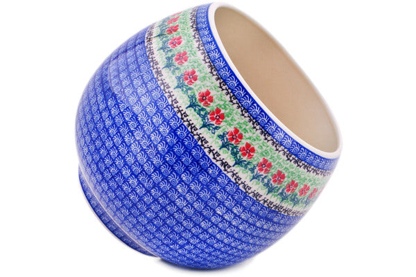 This Polish pottery Planter is made by Ceramika Artystyczna workshop in Boleslawiec, Poland. Manufacturer item number H1038R. It is 8" high and measures 9" by 8½". The capacity of this Planter is 194.6 oz when filled to rim and it weighs 5.0 lbs. The pattern was designed by artist Irena Mączka. It is part of the Maraschino Collection.