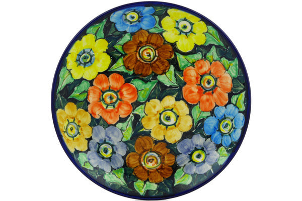 This Polish pottery Plate is made by Ceramika Artystyczna workshop in Boleslawiec, Poland. Manufacturer item number H4387E. It is 1" high and measures 9¼" by 9¼". The weight of this Plate is 1.6 lbs. The pattern was designed by artist Maria Iwicka. It is part of the Springtime Flowers Collection.