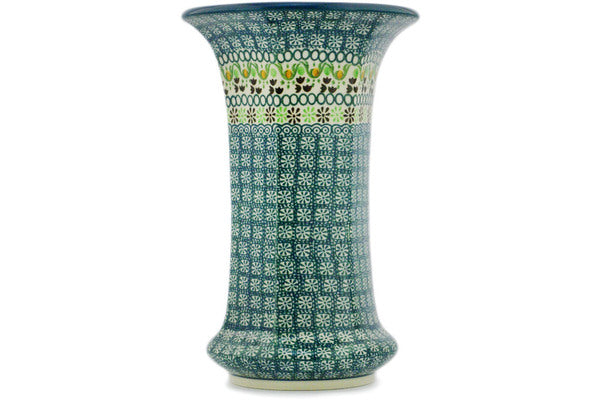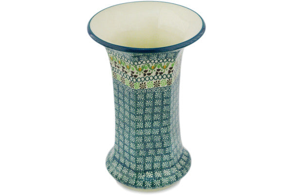 This Polish pottery Vase is made by Ceramika Artystyczna workshop in Boleslawiec, Poland. Manufacturer item number H6084Q. It is 9½" high and measures 6¼" by 6¼". The weight of this Vase is 2.2 lbs. It is part of the Green Fulfillment Collection.