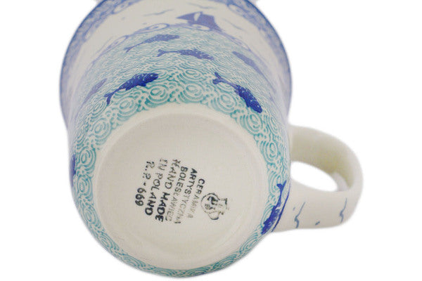 This Polish pottery Mug is made by Ceramika Artystyczna workshop in Boleslawiec, Poland. Manufacturer item number H7630Q. It is 5" high and measures 5" by 4". The capacity of this Mug is 17.4 oz when filled to rim and it weighs 1.1 lbs.