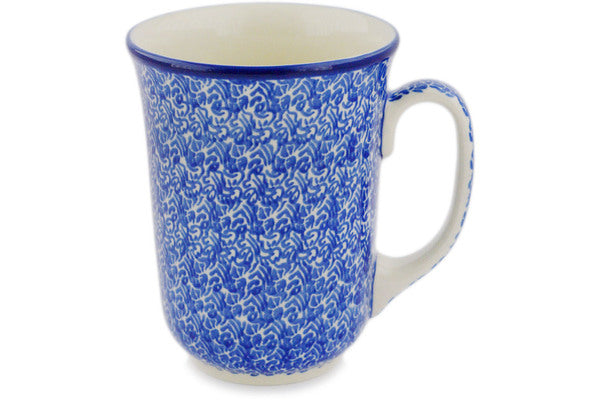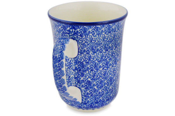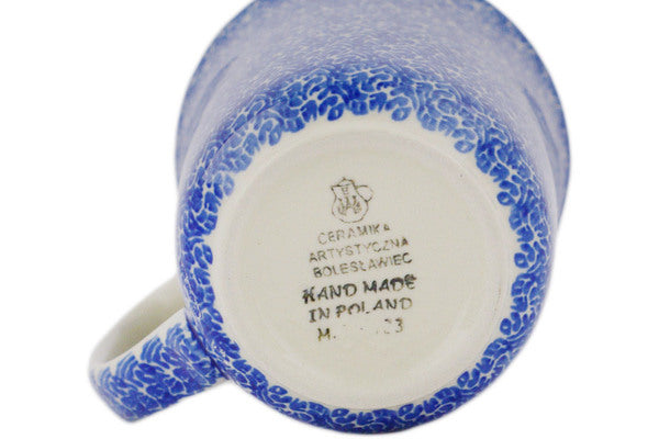 This Polish pottery Mug is made by Ceramika Artystyczna workshop in Boleslawiec, Poland. Manufacturer item number H7454Q. It is 5" high and measures 5" by 4". The capacity of this Mug is 17.4 oz when filled to rim and it weighs 1.1 lbs.