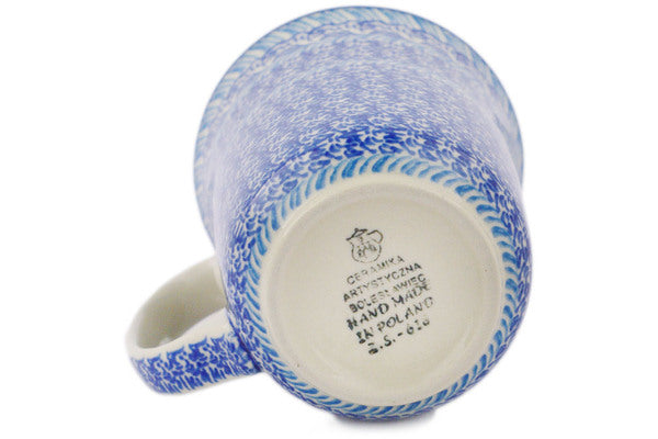 This Polish pottery Mug is made by Ceramika Artystyczna workshop in Boleslawiec, Poland. Manufacturer item number H7438Q. It is 5" high and measures 5" by 4". The capacity of this Mug is 17.4 oz when filled to rim and it weighs 1.1 lbs.