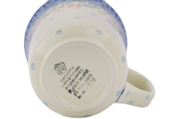 This Polish pottery Mug is made by Ceramika Artystyczna workshop in Boleslawiec, Poland. Manufacturer item number H6187R. It is 5" high and measures 5" by 4". The capacity of this Mug is 17.4 oz when filled to rim and it weighs 1.1 lbs. The pattern was designed by artist Śliwińska.