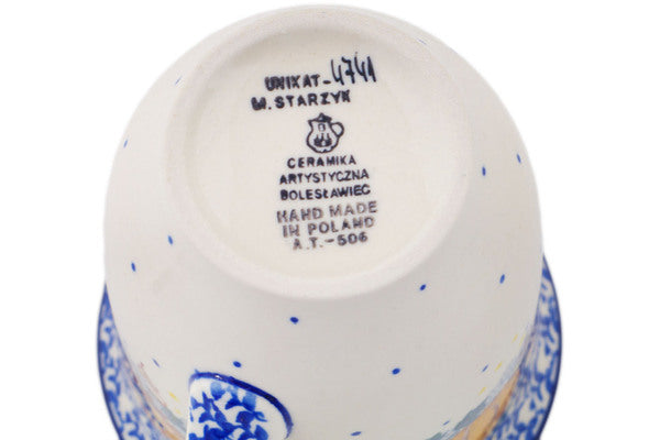 This is a Polish pottery Unikat (Signature) Mug, which means that it has been hand painted with both sponges and brushes and it is signed by the artist who painted it. Unikat pieces are the most intricate works of art. Larger Unikat items take hours of very careful work to finish.