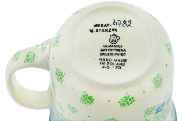 This is a Polish pottery Unikat (Signature) Mug, which means that it has been hand painted with both sponges and brushes and it is signed by the artist who painted it. Unikat pieces are the most intricate works of art. Larger Unikat items take hours of very careful work to finish.