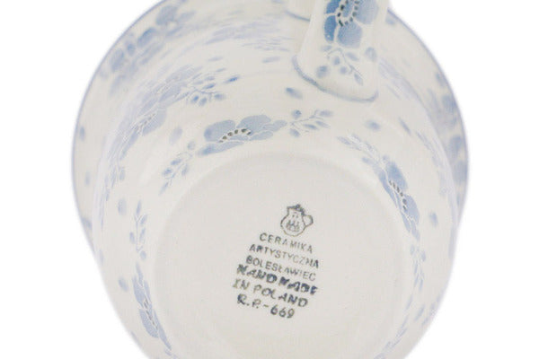 This Polish pottery Mug is made by Ceramika Artystyczna workshop in Boleslawiec, Poland. Manufacturer item number H6251Q. It is 4¾" high and measures 5½" by 4¼". The capacity of this Mug is 16.6 oz when filled to rim and it weighs 1.1 lbs. It is part of the Rain Clouds Collection.