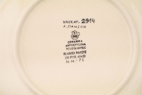 This is a Polish pottery Unikat (Signature) Plate, which means that it has been hand painted with both sponges and brushes and it is signed by the artist who painted it. Unikat pieces are the most intricate works of art. Larger Unikat items take hours of very careful work to finish.