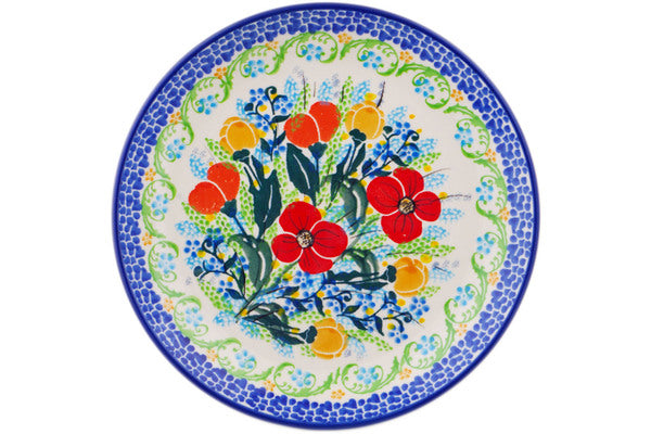 This Polish pottery Plate is made by Ceramika Artystyczna workshop in Boleslawiec, Poland. Manufacturer item number H0725Q. It is 1¼" high and measures 8" by 8". The weight of this Plate is 1.0 lbs. The pattern was designed by artist Agnieszka Damian. It is part of the Blooming Joy Collection.