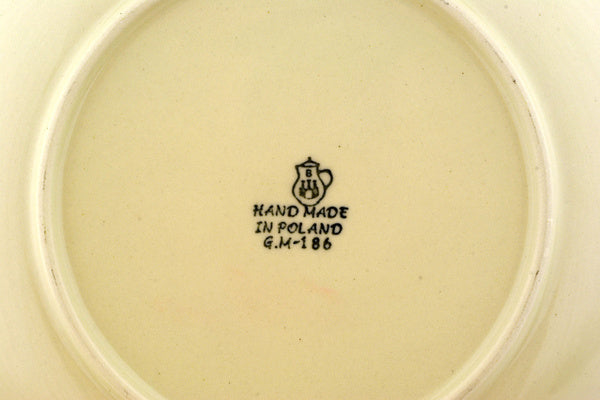 This Polish pottery Plate is made by Ceramika Artystyczna workshop in Boleslawiec, Poland. Manufacturer item number H1709D. It is 1¼" high and measures 8" by 8". The weight of this Plate is 1.0 lbs. The pattern was designed by artist Maria Starzyk. It is part of the Bluebuds Collection.