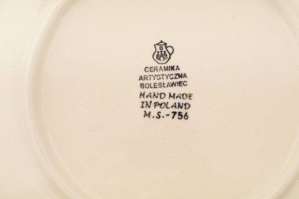 This Polish pottery Plate is made by Ceramika Artystyczna workshop in Boleslawiec, Poland. Manufacturer item number H4417Q. It is 1¼" high and measures 8" by 8". The weight of this Plate is 1.0 lbs. It is part of the Sevenleaf Creeper Collection.