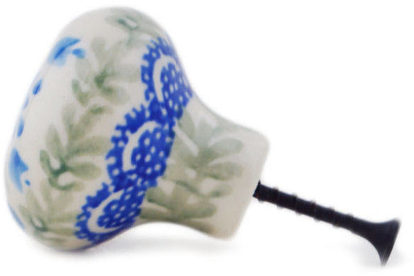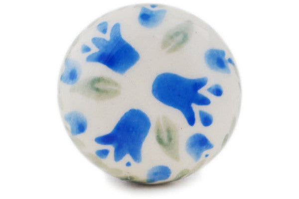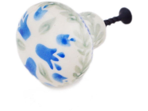 This Polish pottery Drawer Pull Knob is made by Ceramika Artystyczna workshop in Boleslawiec, Poland. Manufacturer item number H5459Q. It is 1½" high and measures 1½" by 1½". The weight of this Drawer Pull Knob is 0.1 lbs. The pattern was designed by artist Jolanta Okraska. It is part of the Blue Tulip Collection.