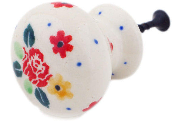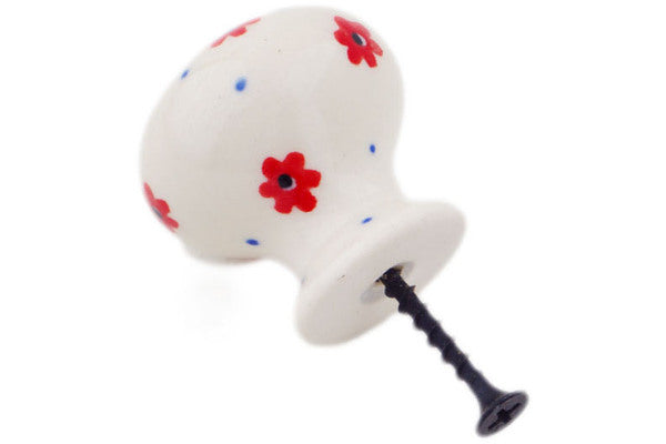 This Polish pottery Drawer Pull Knob is made by Ceramika Artystyczna workshop in Boleslawiec, Poland. Manufacturer item number H6656H. It is 1½" high and measures 1½" by 1½". The weight of this Drawer Pull Knob is 0.1 lbs. The pattern was designed by artist Teresa Liana. It is part of the Flower Speckle Collection.