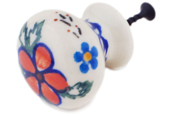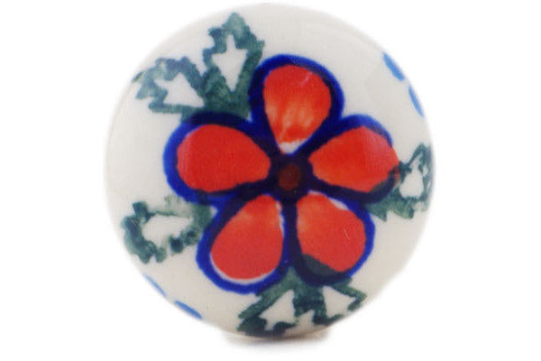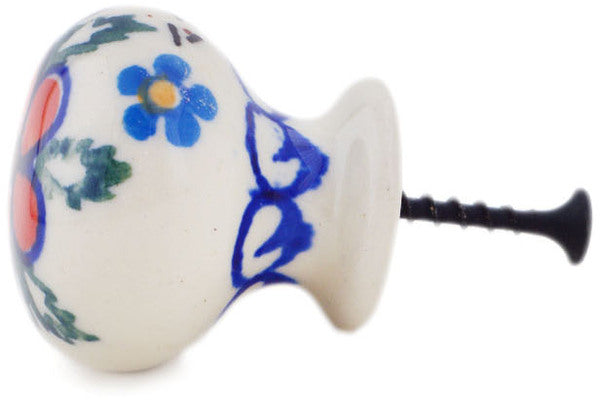 This Polish pottery Drawer Pull Knob is made by Ceramika Artystyczna workshop in Boleslawiec, Poland. Manufacturer item number H3388B. It is 1½" high and measures 1½" by 1½". The weight of this Drawer Pull Knob is 0.1 lbs. The pattern was designed by artist Lucyna Lenkiewicz. It is part of the Lancaster Rose Collection.