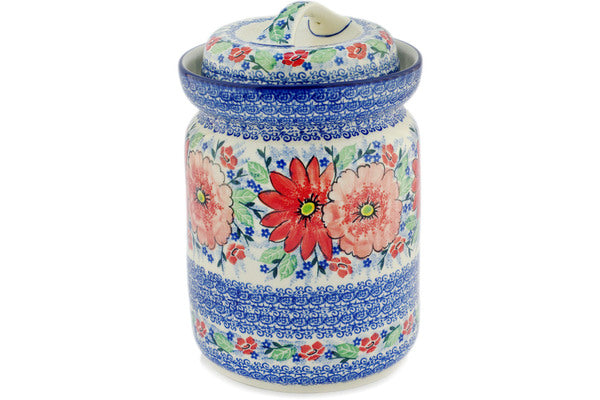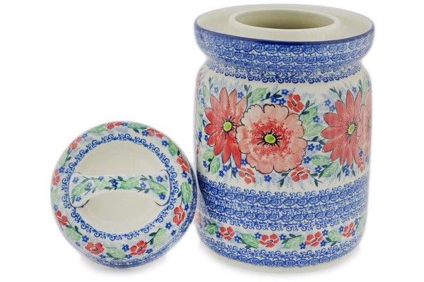 This Polish pottery Fermenting Crock Pot is made by Ceramika Artystyczna workshop in Boleslawiec, Poland. Manufacturer item number H7229Q. It is 10¾" high and measures 7" by 6¼". The capacity of this Fermenting Crock Pot is 118.3 oz when filled to rim and it weighs 5.9 lbs. It is part of the Peak Of Perfection Collection.
