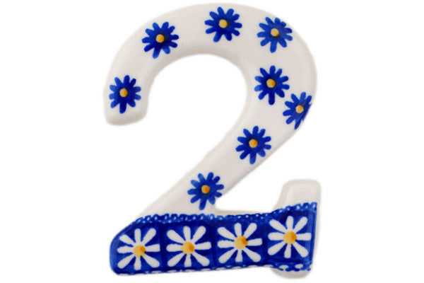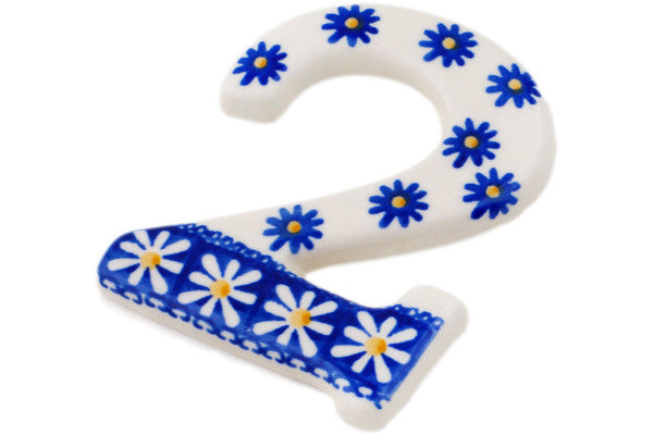 This Polish pottery Number is made by Ceramika Artystyczna workshop in Boleslawiec, Poland. Manufacturer item number H5570H. It is ¼" high and measures 4" by 3". The weight of this Number is 0.2 lbs. The pattern was designed by artist Anna Fryc. It is part of the Sweet Daisy Collection.