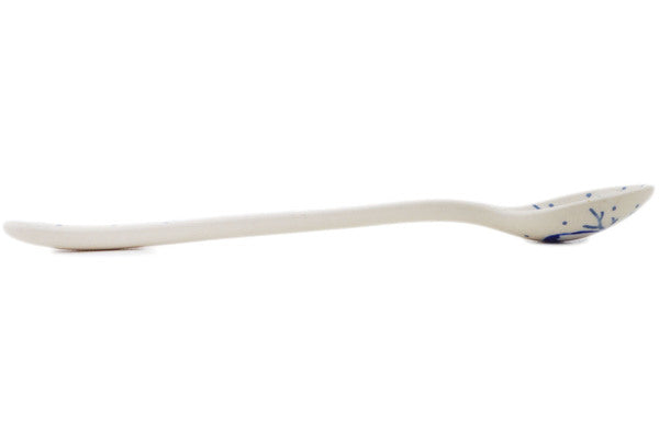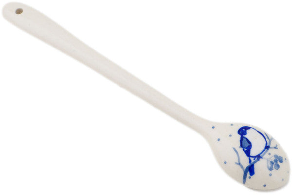 This Polish pottery Spoon is made by Ceramika Artystyczna workshop in Boleslawiec, Poland. Manufacturer item number H9420Q. It is ½" high and measures 7" by 1¼". The weight of this Spoon is 0.1 lbs. The pattern was designed by artist Maria Starzyk. It is part of the Waiting Birds Collection.