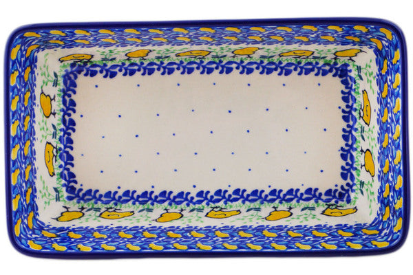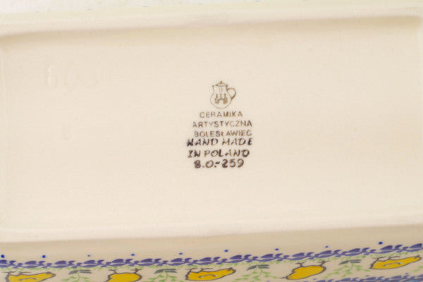 This Polish pottery Rectangular Baker is made by Ceramika Artystyczna workshop in Boleslawiec, Poland. Manufacturer item number H9213Q. It is 3" high and measures 8" by 5". The capacity of this Rectangular Baker is 36.3 oz when filled to rim and it weighs 1.9 lbs. It is part of the Hatched Collection.