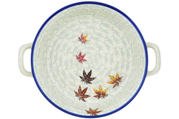 Polish Pottery Medium Round Baker with Handles Autumn Breeze