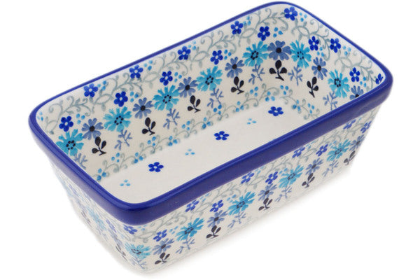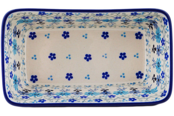 Polish Pottery Mini loaf pan Baby Blue Garden
