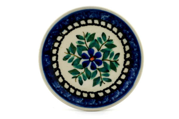 Polish Pottery Mini Plate, Coaster plate Blue Daisy Swirls