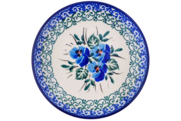 Polish Pottery Mini Plate, Coaster plate Blue Pansy