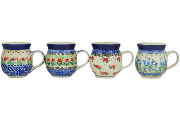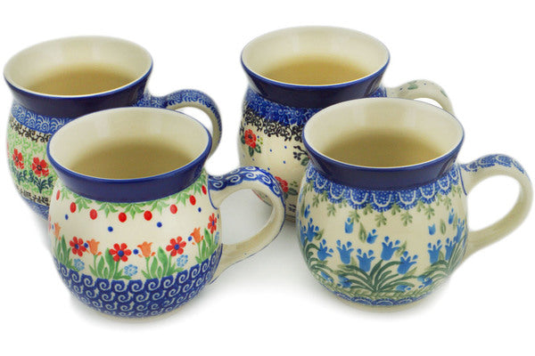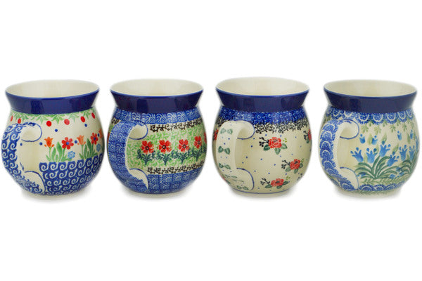 Polish Pottery Set of 4 Bubble Mugs Mix