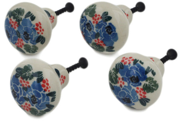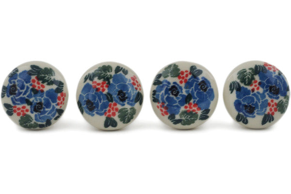 This Polish pottery Set of 4 Drawer Pull Knobs is made by Ceramika Artystyczna workshop in Boleslawiec, Poland. Manufacturer item number H3454L. It is 1½" high and measures 1½" by 1½". The weight of this Set of 4 Drawer Pull Knobs is 0.4 lbs. The pattern was designed by artist Teresa Liana. It is part of the Burst Of Color Collection.