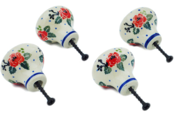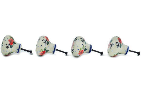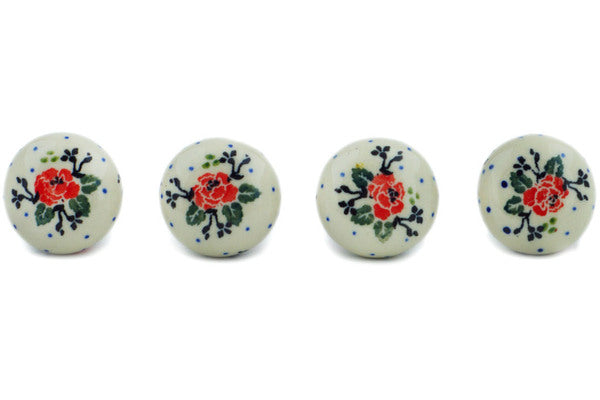Polish Pottery Set of 4 Drawer Pull Knobs 1-1/2 inch Wild Rose