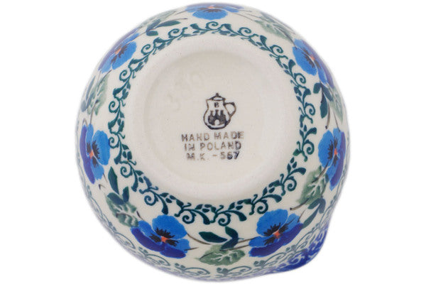 This Polish pottery Mortar and Pestle is made by Ceramika Artystyczna workshop in Boleslawiec, Poland. Manufacturer item number H9479Q. It is 1¾" high and measures 3½" by 3¼". The weight of this Mortar and Pestle is 0.4 lbs. It is part of the Blue Pansy Collection.