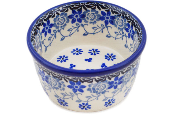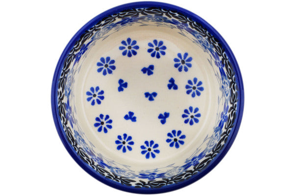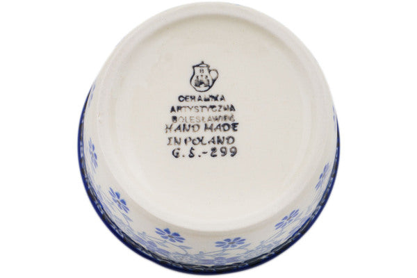 This Polish pottery Bowl is made by Ceramika Artystyczna workshop in Boleslawiec, Poland. Manufacturer item number H5994Q. It is 2" high and measures 3¾" by 3¾". The capacity of this Bowl is 6.4 oz when filled to rim and it weighs 0.4 lbs. It is part of the First Snow Collection.