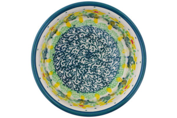 This Polish pottery Bowl is made by Ceramika Artystyczna workshop in Boleslawiec, Poland. Manufacturer item number H6490Q. It is 2" high and measures 3¾" by 3¾". The capacity of this Bowl is 6.4 oz when filled to rim and it weighs 0.4 lbs. It is part of the Summer Meadow Collection.