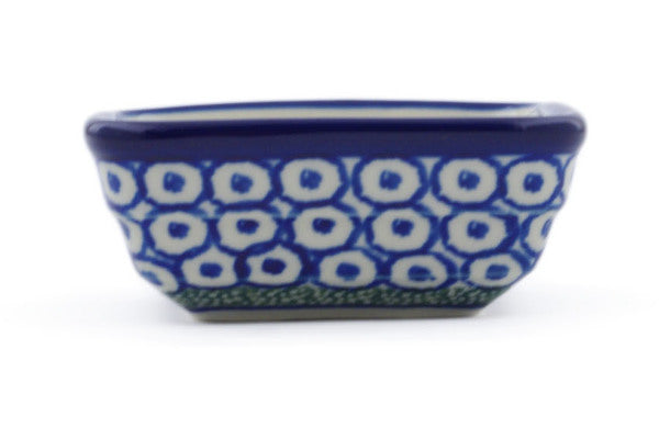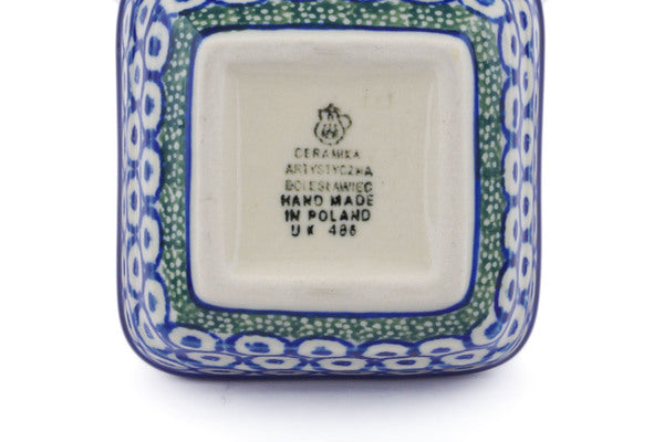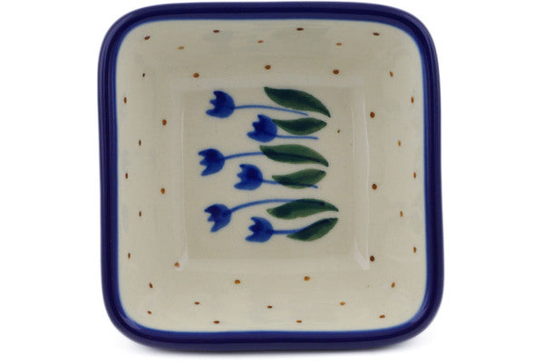 This Polish pottery Square Bowl is made by Ceramika Artystyczna workshop in Boleslawiec, Poland. Manufacturer item number H0612J. It is 1¼" high and measures 3¼" by 3¼". The weight of this Square Bowl is 0.3 lbs. The pattern was designed by artist Maria Ciszewska. It is part of the Water Tulip Collection.