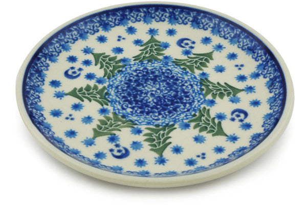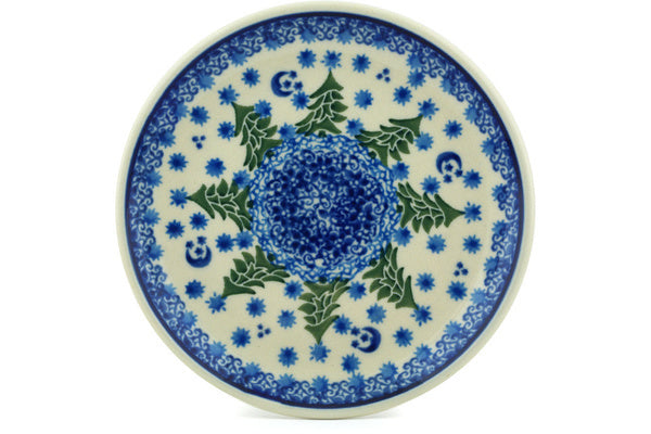 This Polish pottery Plate is made by Ceramika Artystyczna workshop in Boleslawiec, Poland. Manufacturer item number H2610H. It is ¾" high and measures 6¼" by 6¼". The weight of this Plate is 0.7 lbs. The pattern was designed by artist Jolanta Okraska. It is part of the Snowy Forest Collection.