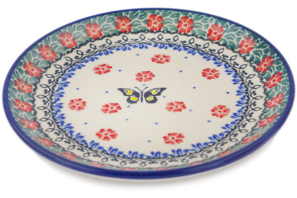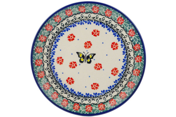 This Polish pottery Plate is made by Ceramika Artystyczna workshop in Boleslawiec, Poland. Manufacturer item number H9878Q. It is ¾" high and measures 6¼" by 6¼". The weight of this Plate is 0.7 lbs. The pattern was designed by artist Teresa Liana. It is part of the Spring Butterfly Collection.